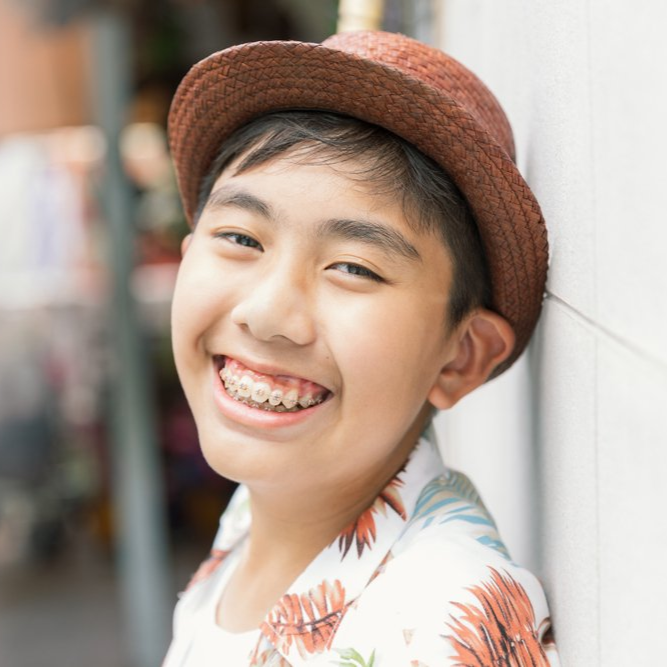 Traditional braces work their magic with metal wires and brackets to help your kids' teeth move into their perfect spot!